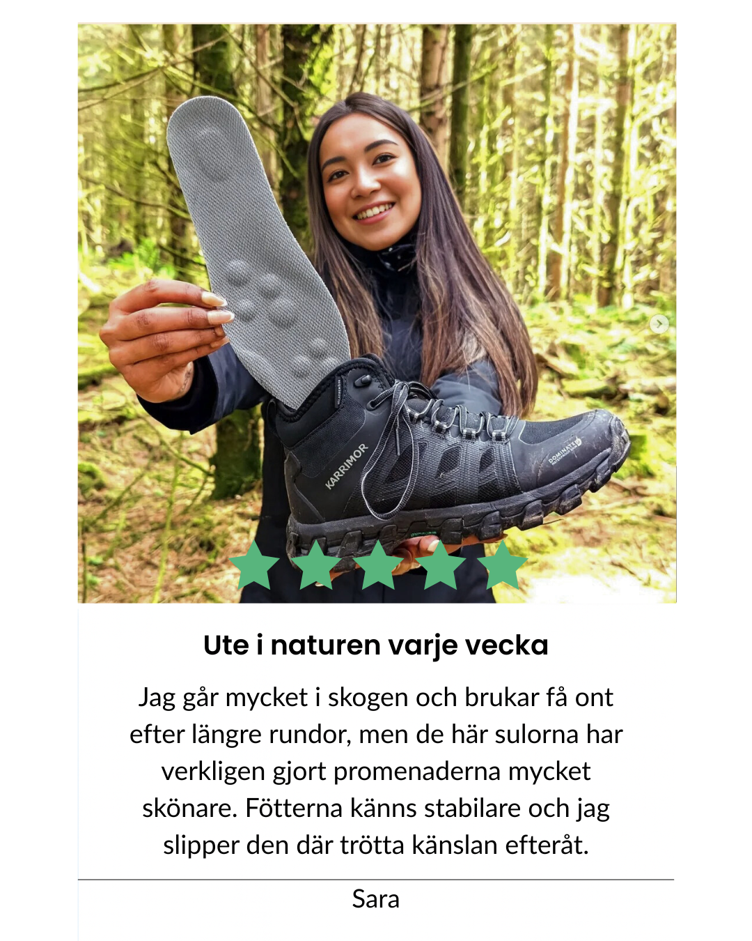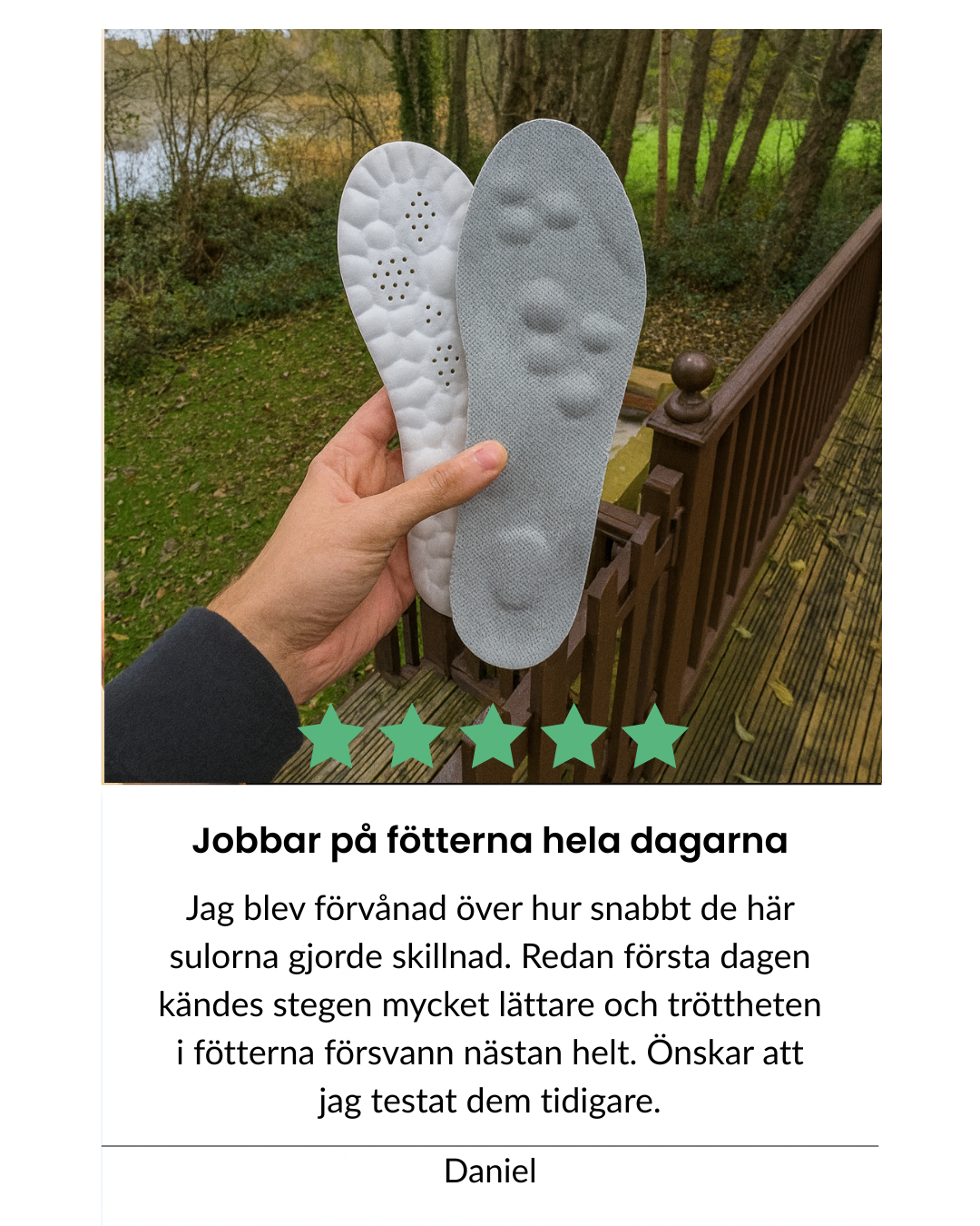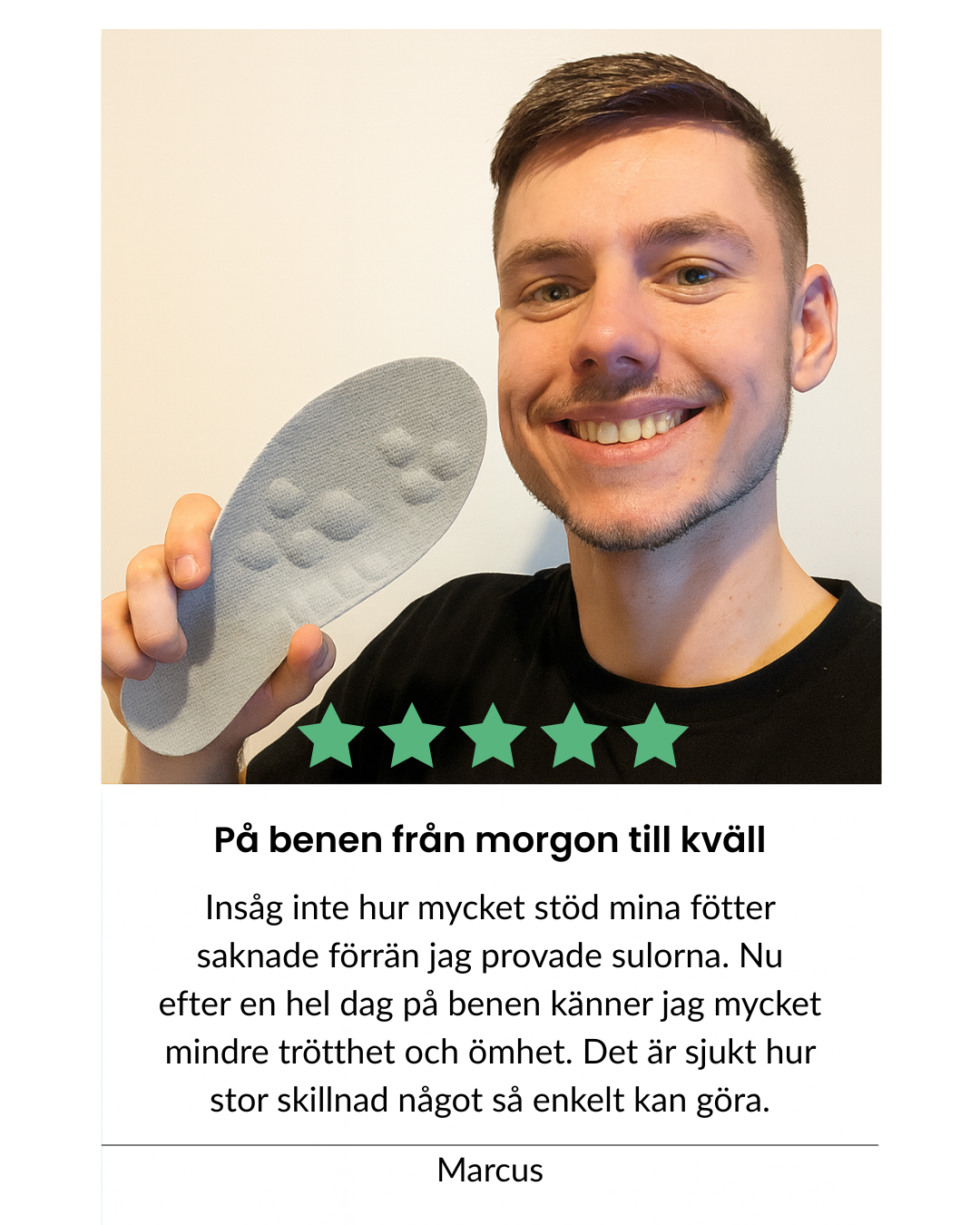 Vi vet hur frustrerande det är när varje steg gör ont. Därför har vi tagit fram sulor som ger snabb avlastning, bättre stöd och skönare steg – utan krångel eller dyra behandlingar.